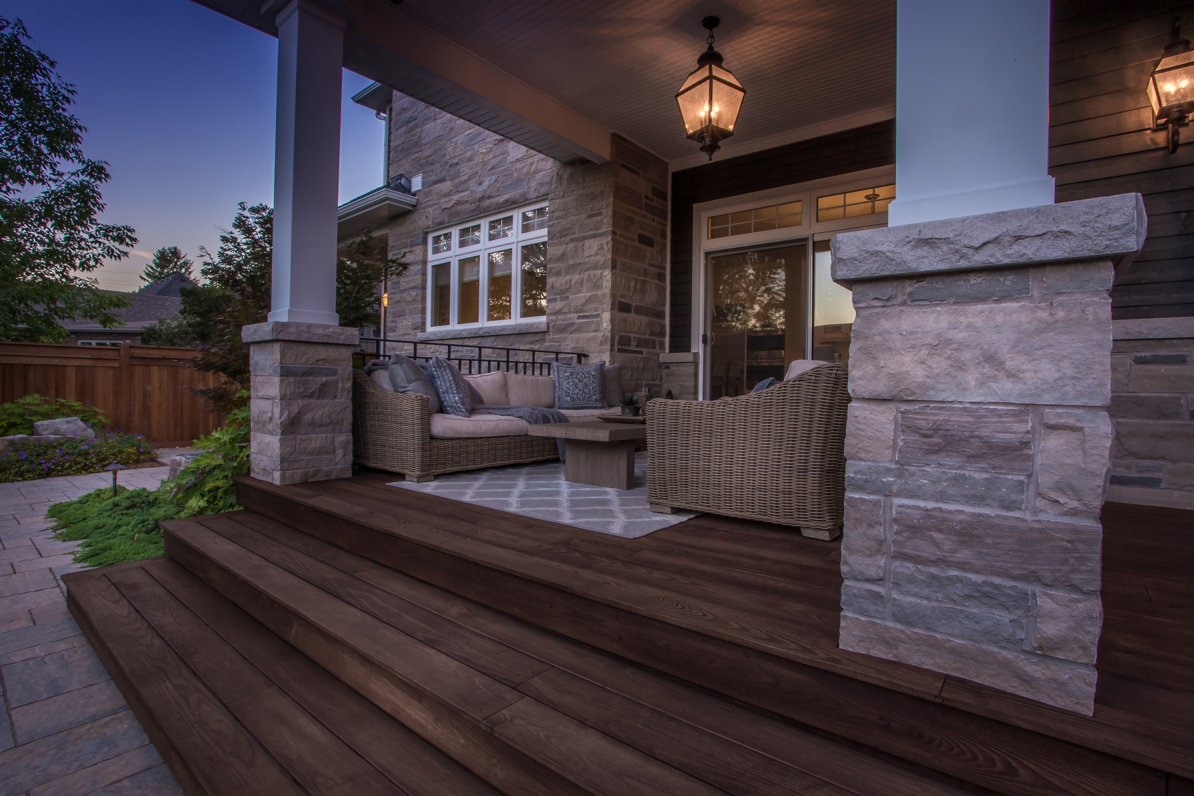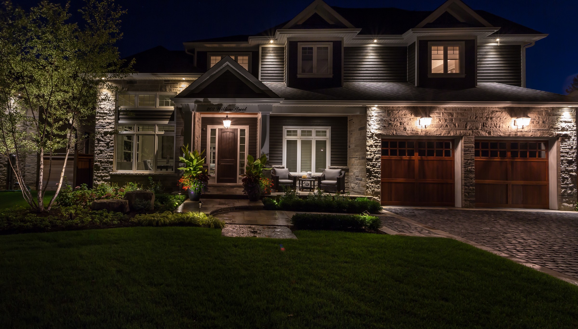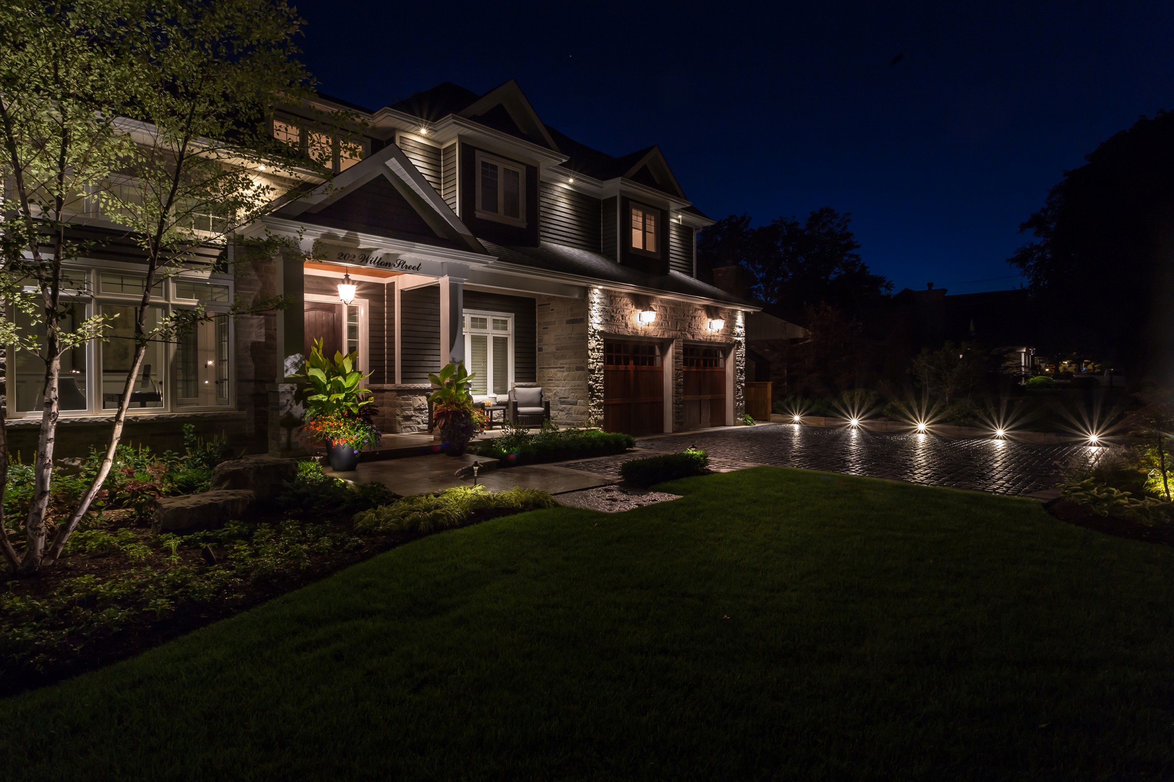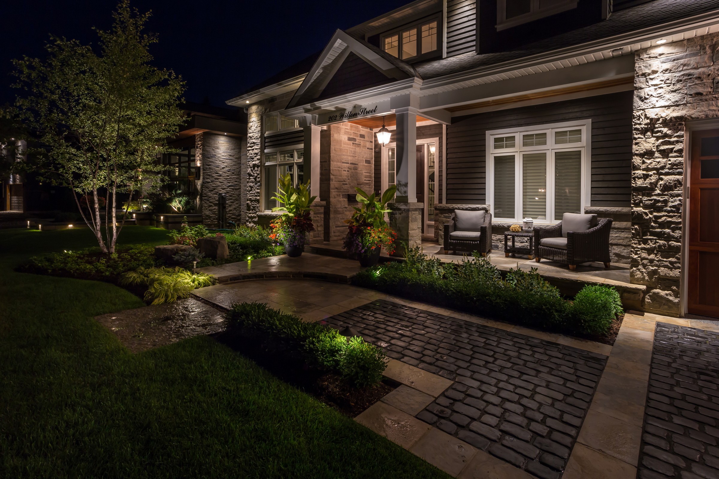 Reminiscent of the romance found in the centuries-old streets of European cities, a cobblestone driveway with an Eramosa flagstone border gives a luxurious finish to what is typically a very simple element of a landscape.